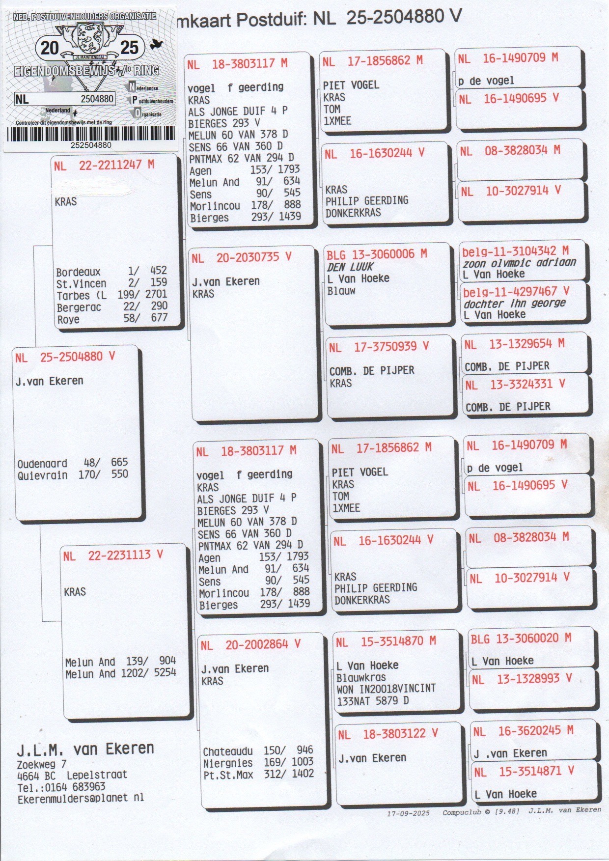 Jan Van Ekeren from Lepelstraat NL a great breader (1st National)