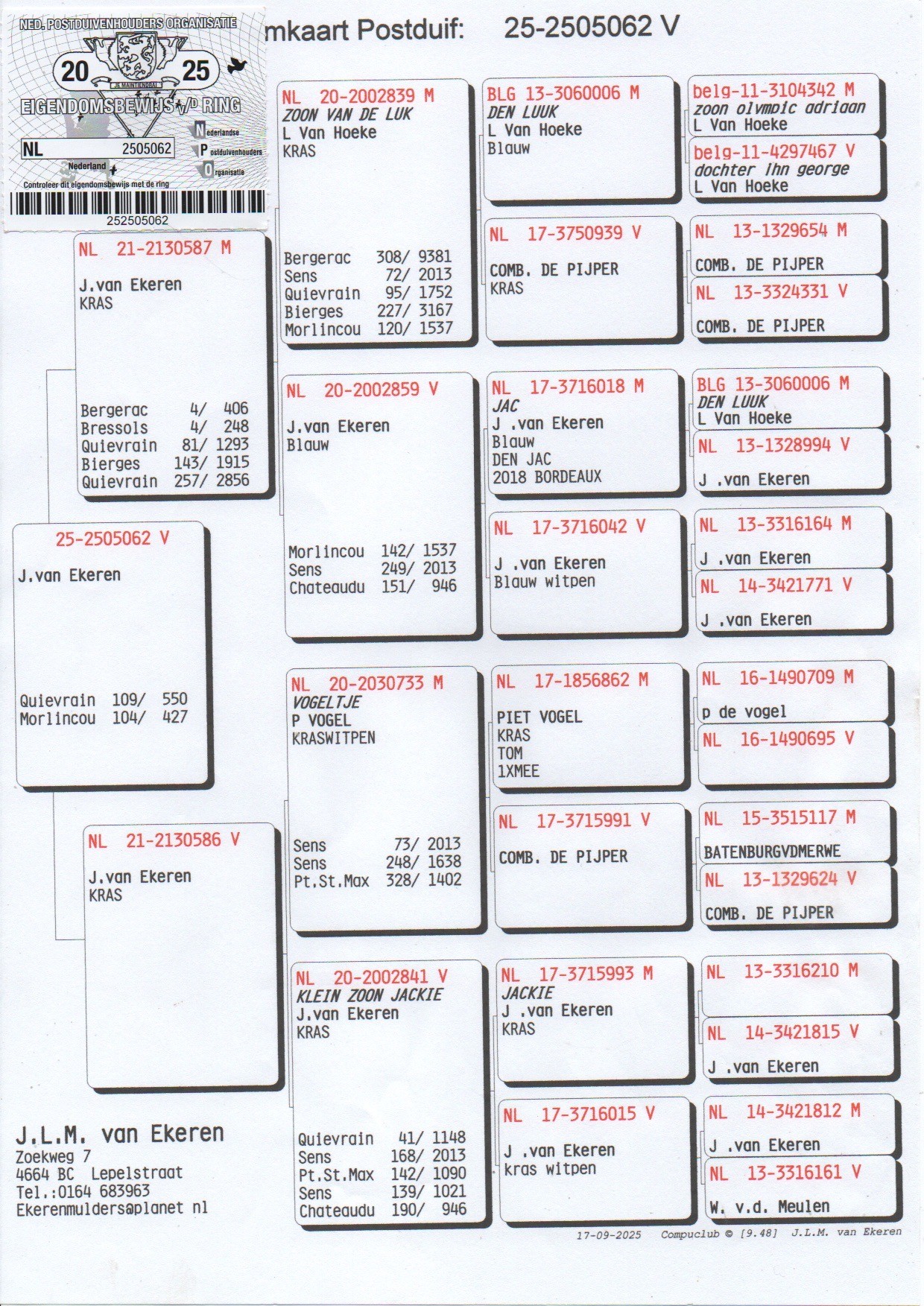 Jan Van Ekeren from Lepelstraat NL a great breader (1st National)