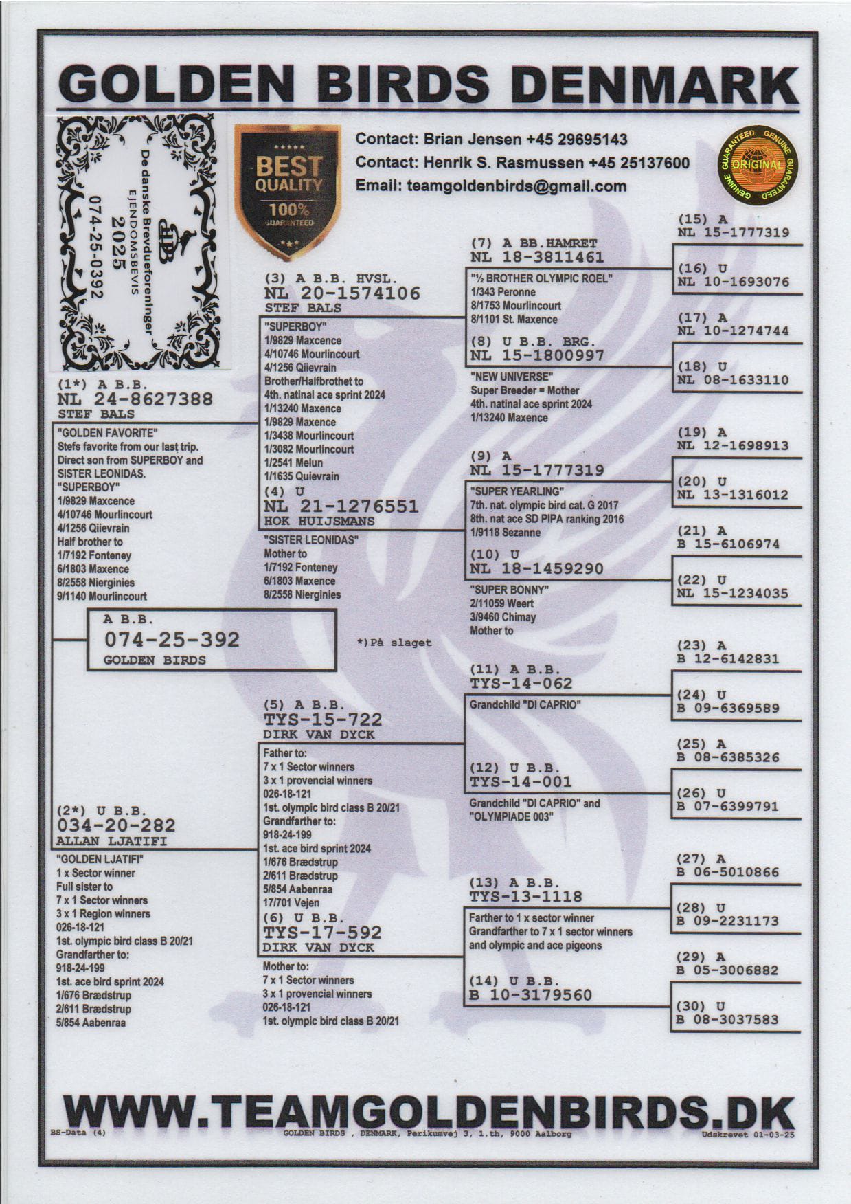 RUUD NIJSSEN a Dutch breeder known for his very good results in the Marathon and also for the other tipe of races. Offers for sale, 10 pigeons from the Marathon category, through BidPigeon. The auction starts on 22-10-2021 at 20:00 and closes on 05-11-2021 at 21:00. He started competing with pigeons at the age of 18, so today he can be proud of a 38-year experience in the pigeon field. His pigeons have brought him countless results over the years and continue to this day. So: